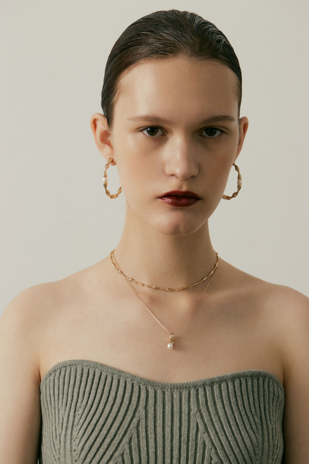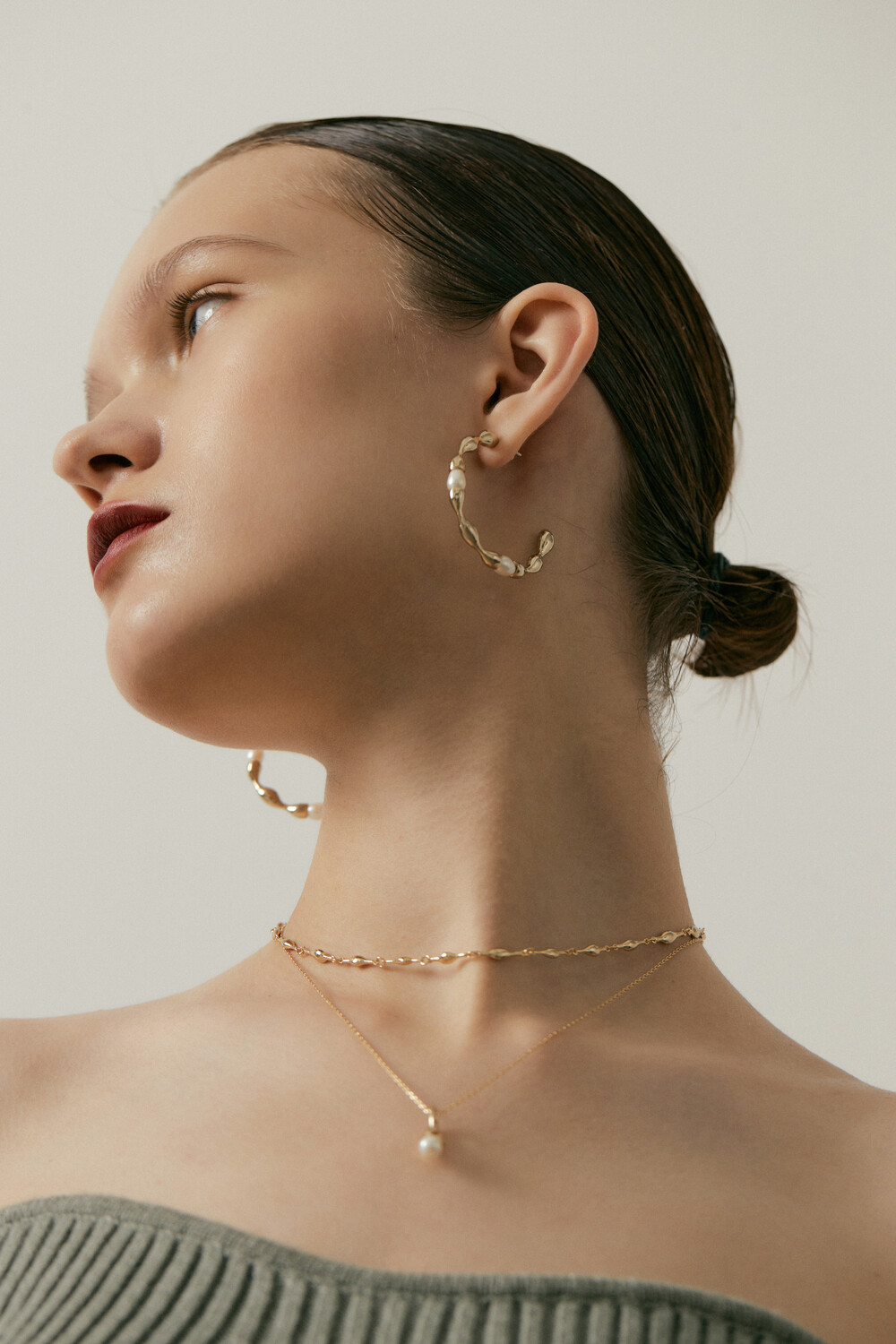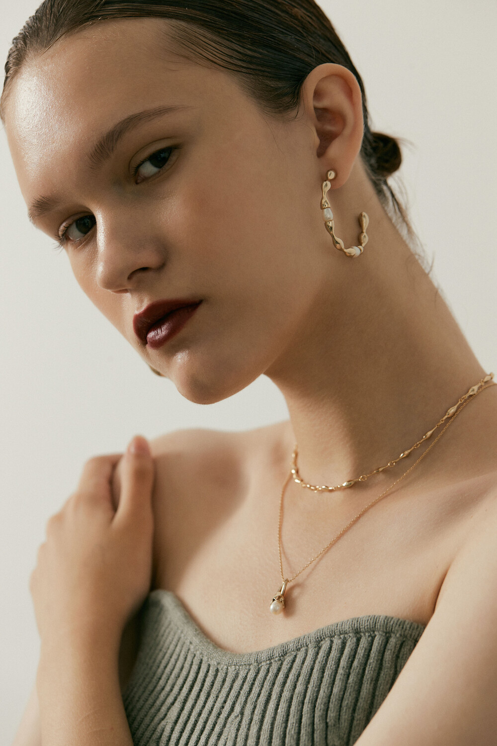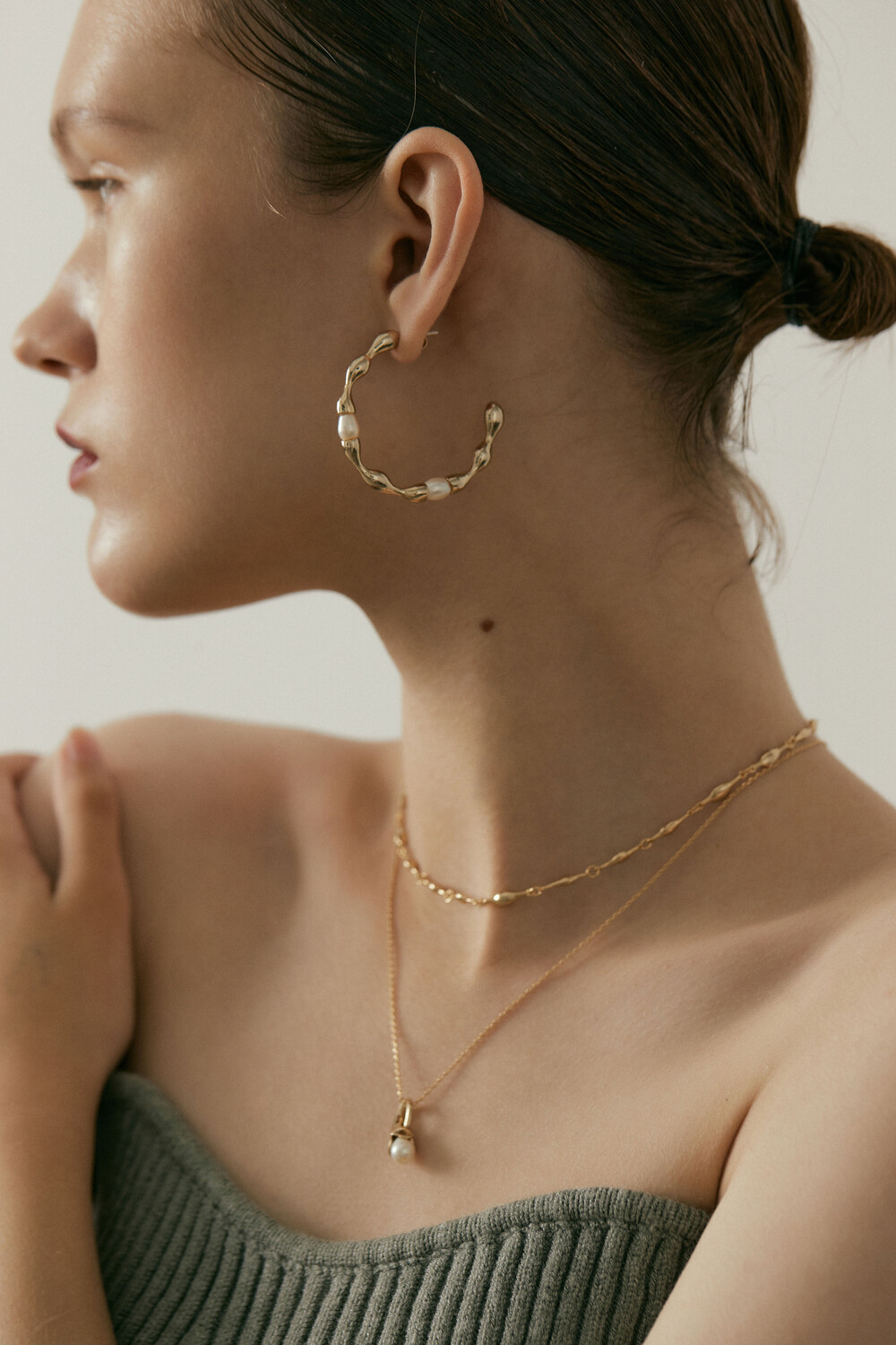 첫번째 컬렉션은 도자기, 진주를 함께 사용합니다. 직접 틀을 뜨고, 흙을 다듬어 모양을 만들고, 유약테스트를 거쳐 이번 컬렉션과 가장 잘 어울리는 두가지 색을 골랐습니다.
