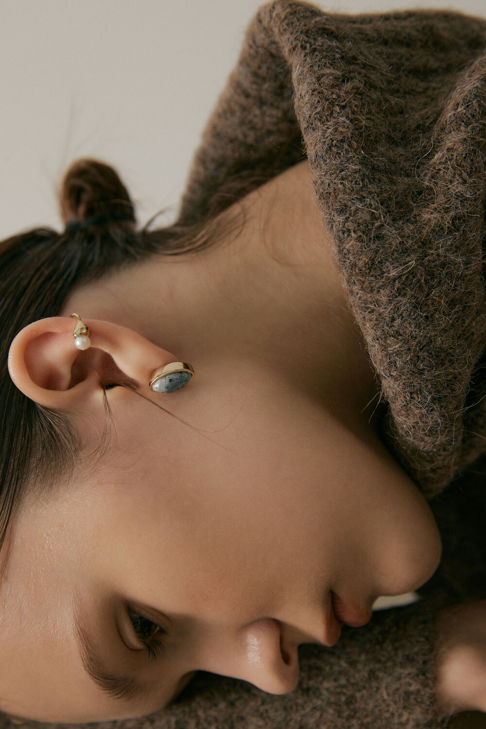 첫번째 컬렉션은 도자기, 진주를 함께 사용합니다. 직접 틀을 뜨고, 흙을 다듬어 모양을 만들고, 유약테스트를 거쳐 이번 컬렉션과 가장 잘 어울리는 두가지 색을 골랐습니다.